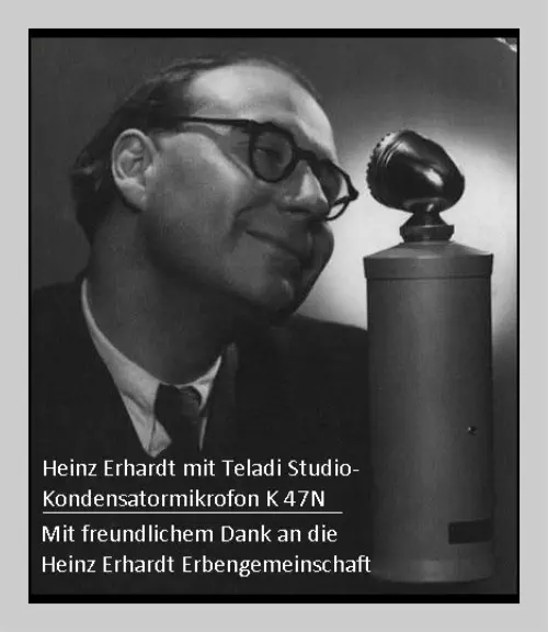 Heinz Erhardt, arbeiten mit Teladi Mikrofonen.